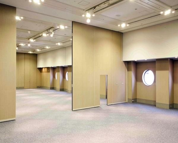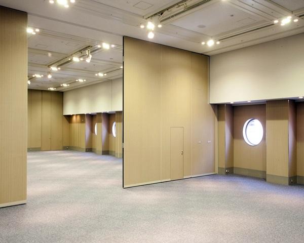 またスライディングウォール(間仕切り)で会場を2分割、3分割と規模に応じて面積を選ぶことができるのも、使いやすさに重点をおいているからこそ。